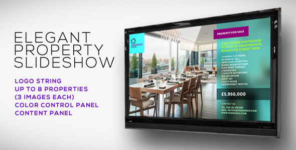 Description: Elegant Property Slideshow Digital SignageEasy to Edit with Color Panel and Content Panel Up to 2,40 min pre Loo...